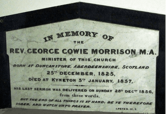 Anderson was then succeeded by Reverend George Cowie Morrison, a Scottish minister from Aberdeenshire. A bit of a “sickly” youngster, Morrison had felt the calling of religion since he was a young man, and around 1855, he left his homeland to take up the reigns at the Kyneton Congregational Church on a trial basis.