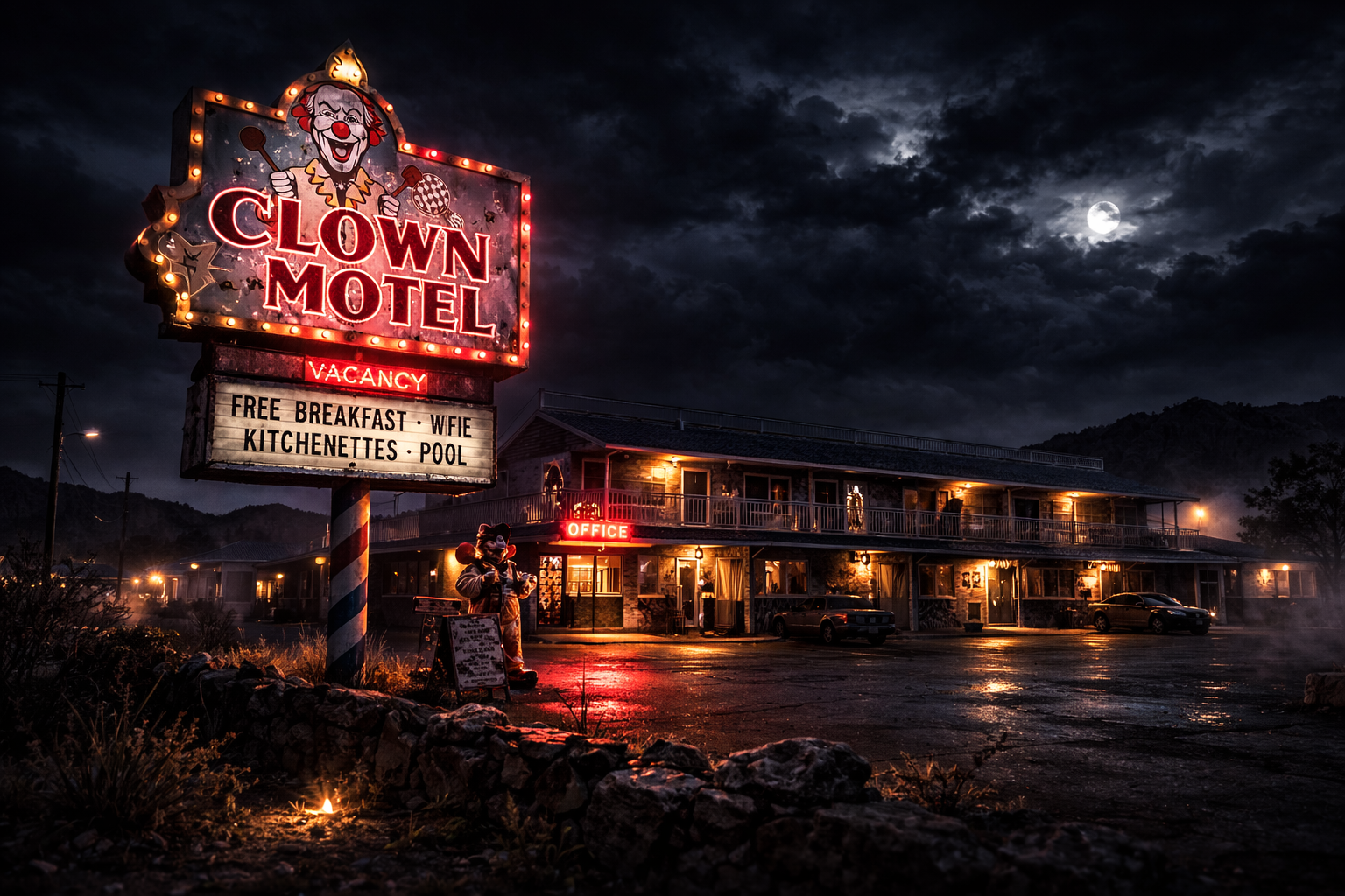 No visit to the motel can start before you force yourself to go into the highly triggering, and terrifying clown museum …